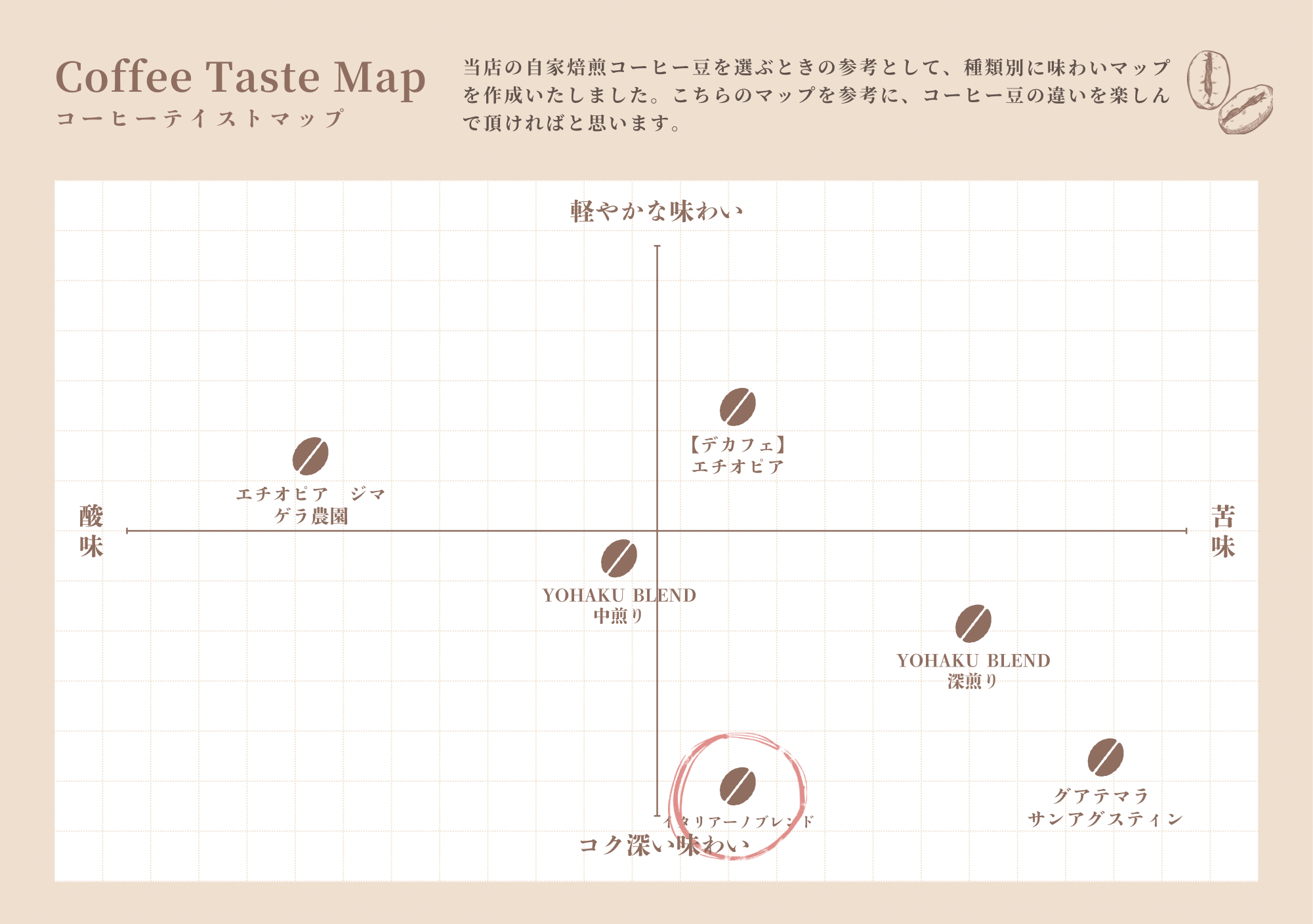 ミルクとの相性もよく、ラテ、アメリカーノにも最適です。